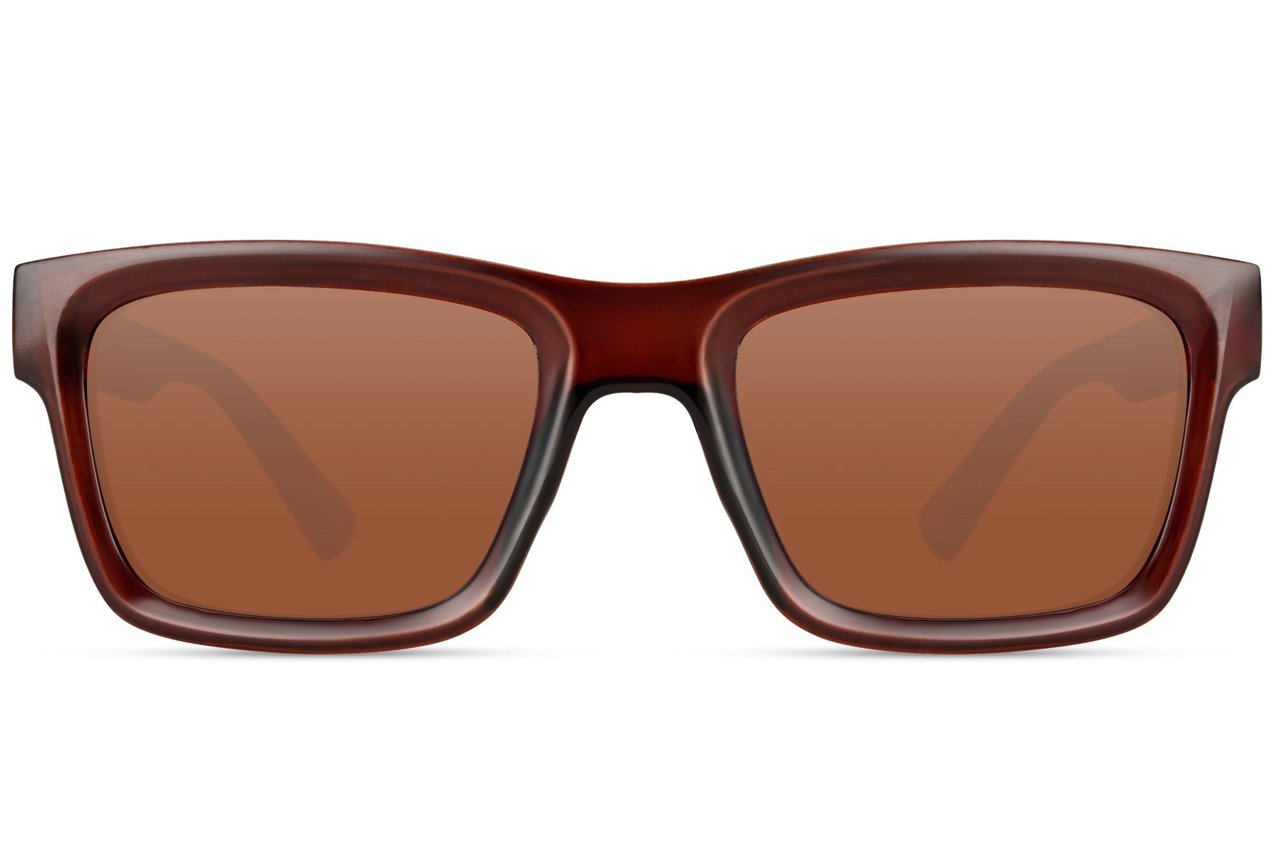 Deze zonnebril combineert een bruin frame met bijpassende bruine lenzen. Het montuur is gemaakt van 100% gerecycled polyester (rPC) en de lenzen van polycarbonaat, mét volledige UV-bescherming (categorie 3).