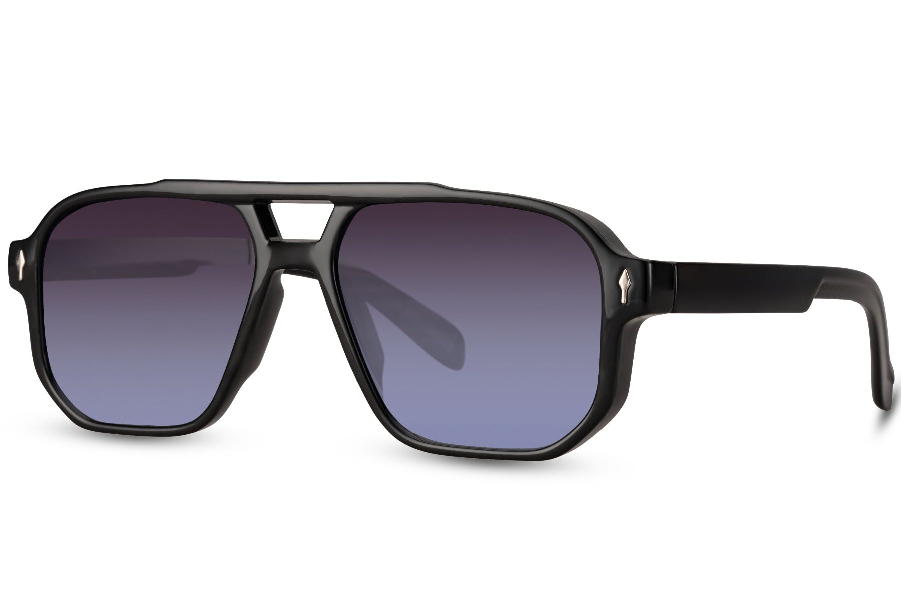 Deze zwarte zonnebril met blauwe lenzen combineert een moderne look met maximaal draagcomfort. Gemaakt van sterk polycarbonaat en voorzien van 100% UV-bescherming (categorie 3).