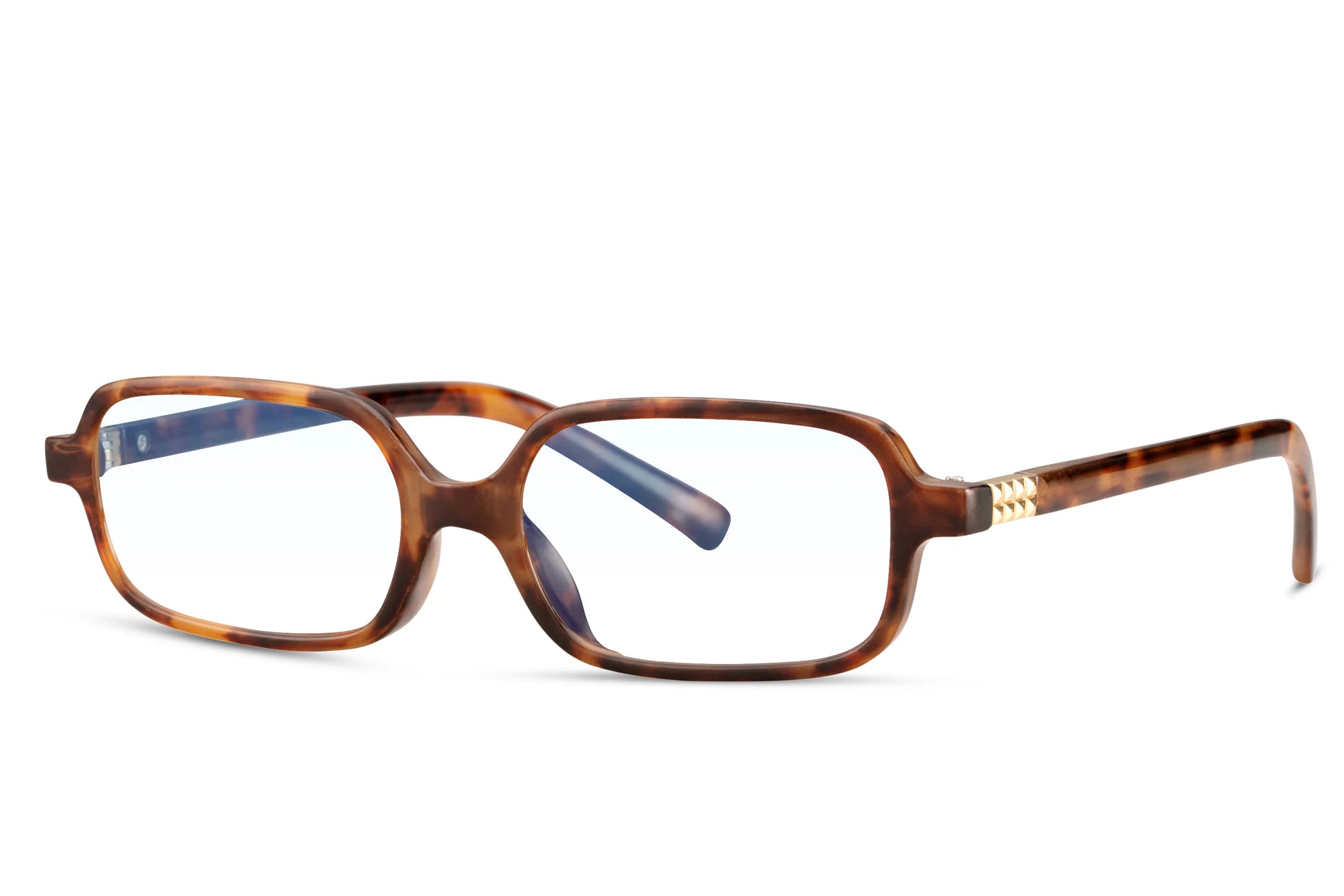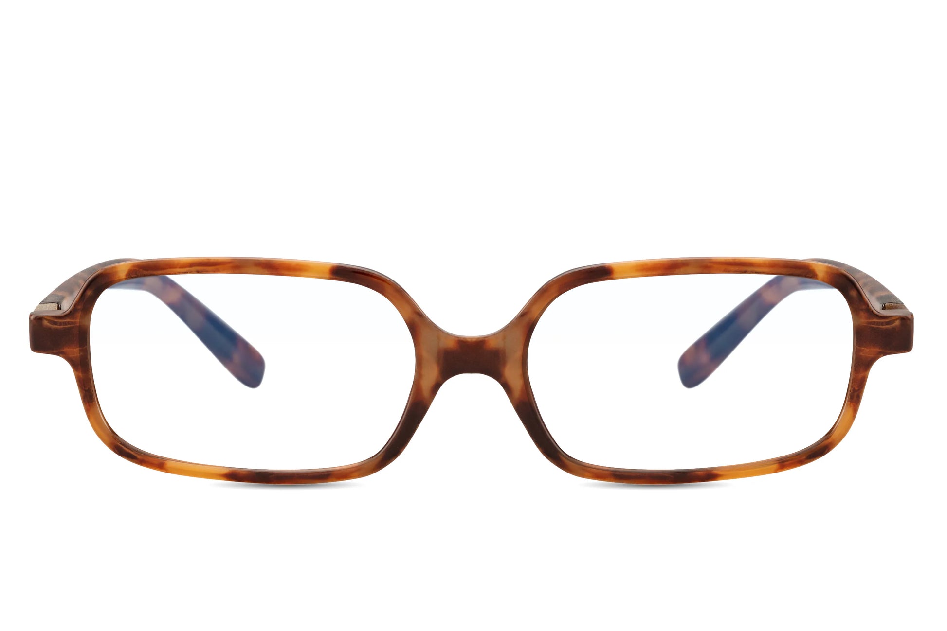 Deze rechthoekige bril heeft een bruin montuur van 100% gerecycled polyester en rPC. De transparante lenzen zijn voorzien van een blauwlichtfilter, ideaal tegen vermoeide ogen achter schermen. Comfortabel voor dagelijks gebruik door heren én dames