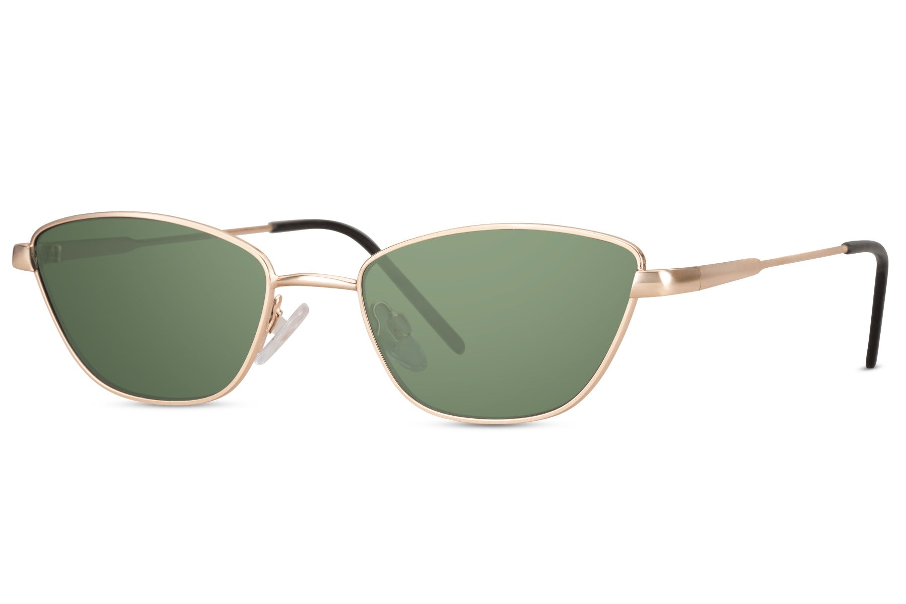 Deze dames zonnebril met goudkleurig montuur en groene lenzen straalt klasse uit. Gemaakt van gerecycled materiaal, stijlvol én voorzien van 100% UV-bescherming. Perfect voor een tijdloze zomerse look.