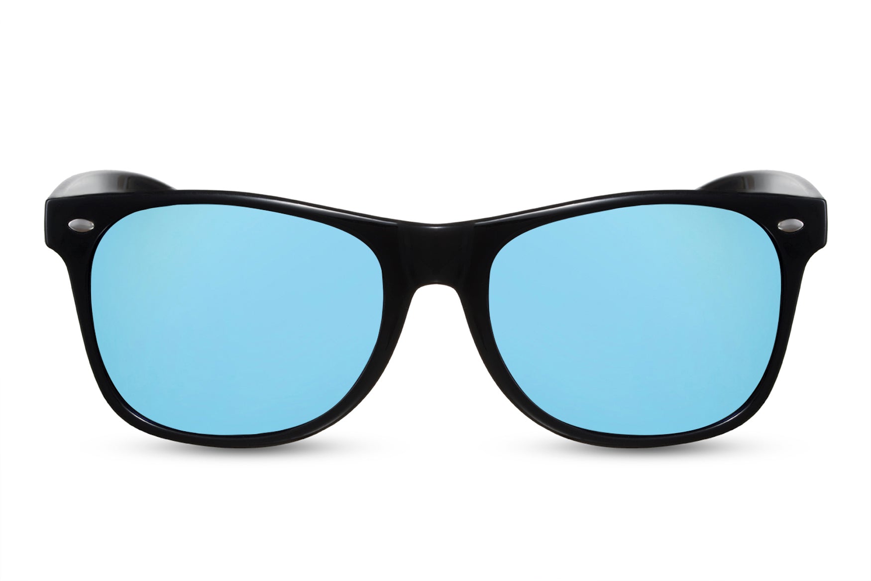Deze unisex zonnebril met glanzend zwart montuur en blauwe spiegelglazen geeft een moderne, stoere look. Met 100% UV-bescherming (categorie 3) ben je altijd stijlvol én goed beschermd in de zon.