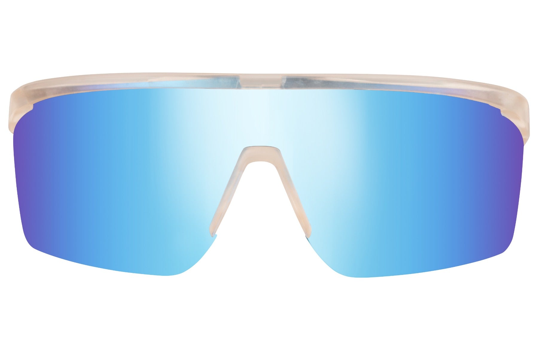 Deze moderne unisex sport/skibril combineert een strak wit montuur met spiegelblauwe lenzen. De polycarbonaat lenzen bieden 100% UV-bescherming (categorie 3), waardoor je ogen optimaal beschermd zijn tegen fel zonlicht én de schittering van sneeuw. Dankzij het lichte, gerecyclede materiaal zit de bril comfortabel, ook bij langdurig dragen. Ideaal voor een dag op het strand, tijdens het fietsen of als onmisbare accessoire op de skipiste. Met zijn sportieve en stoere look steel je overal de show.