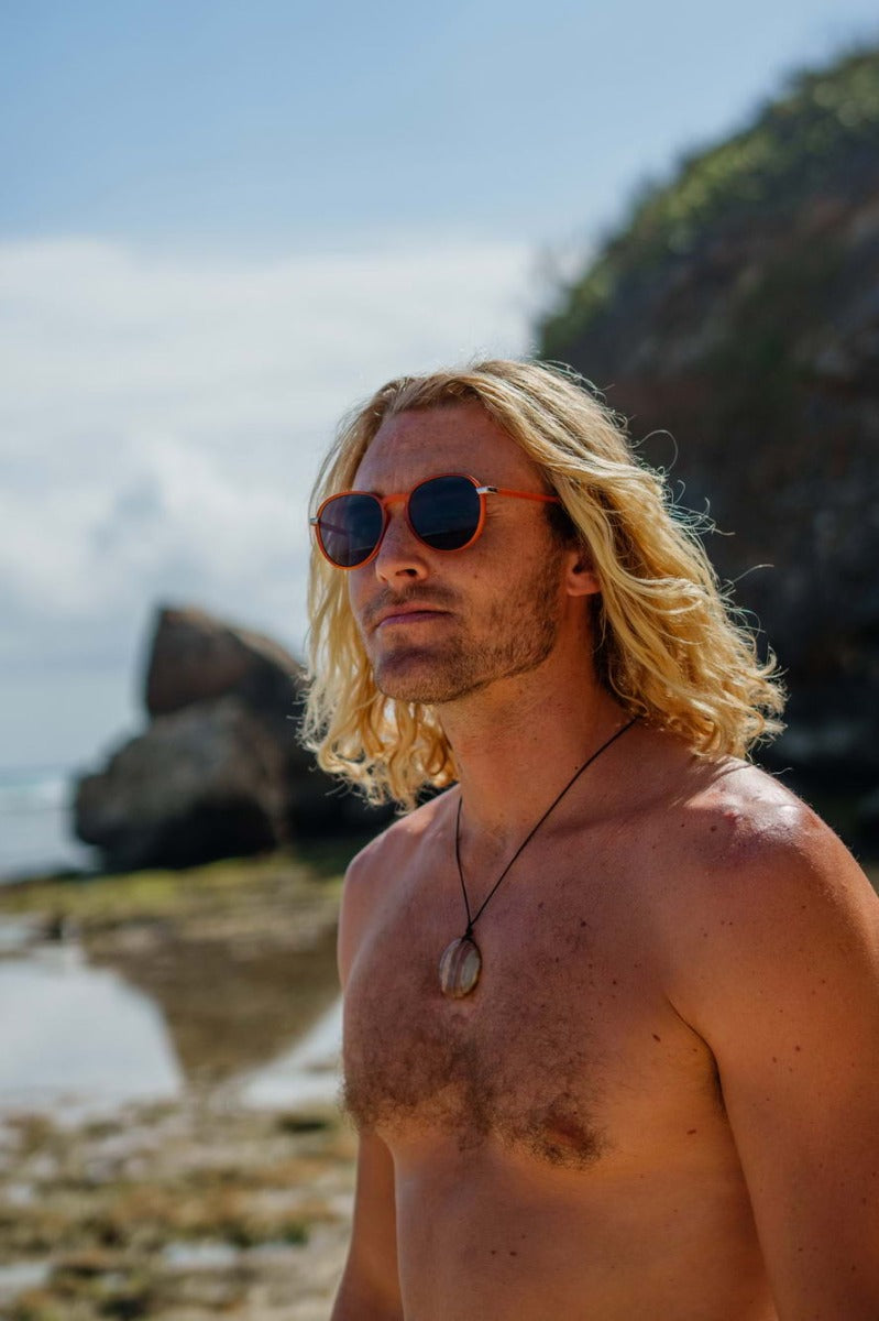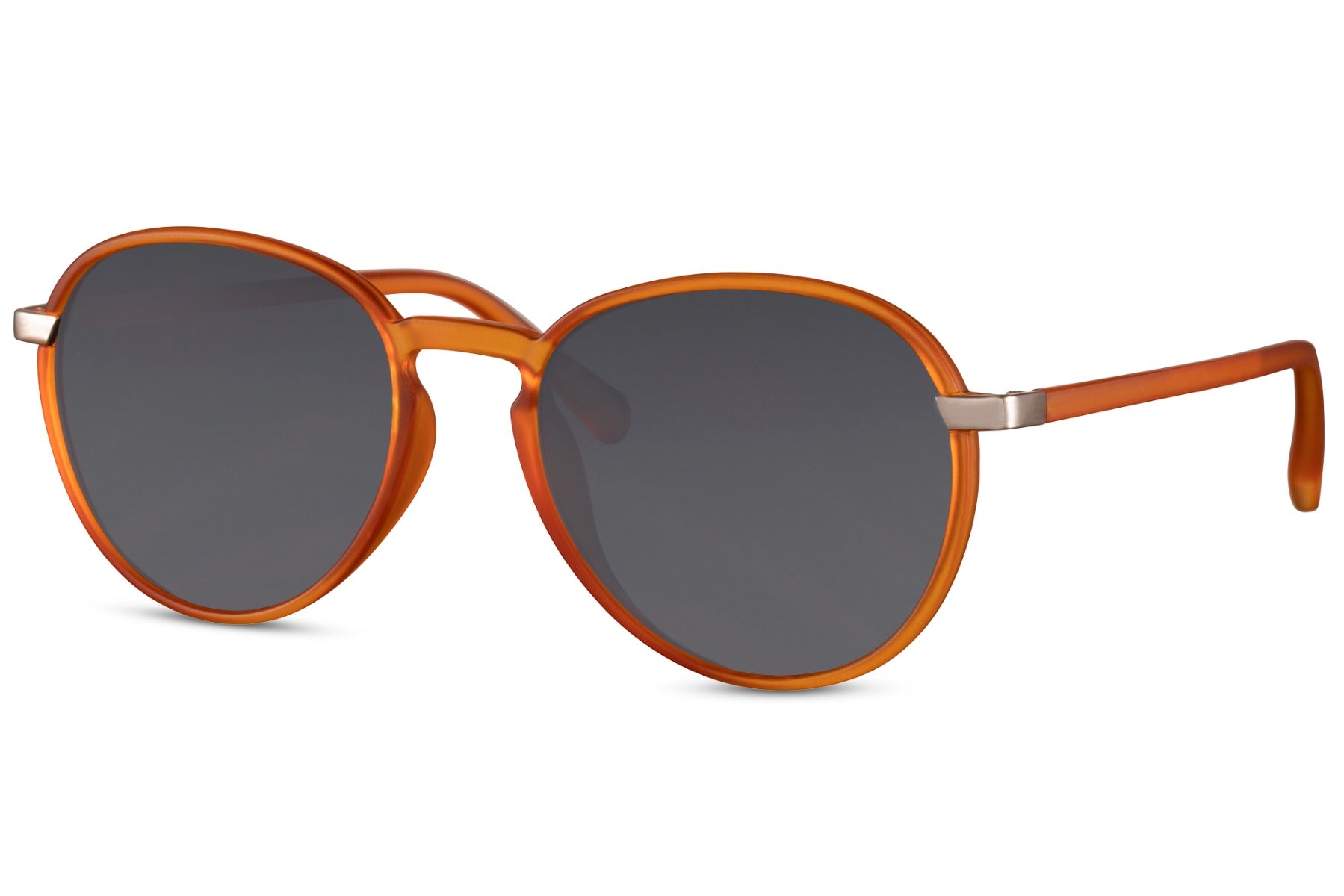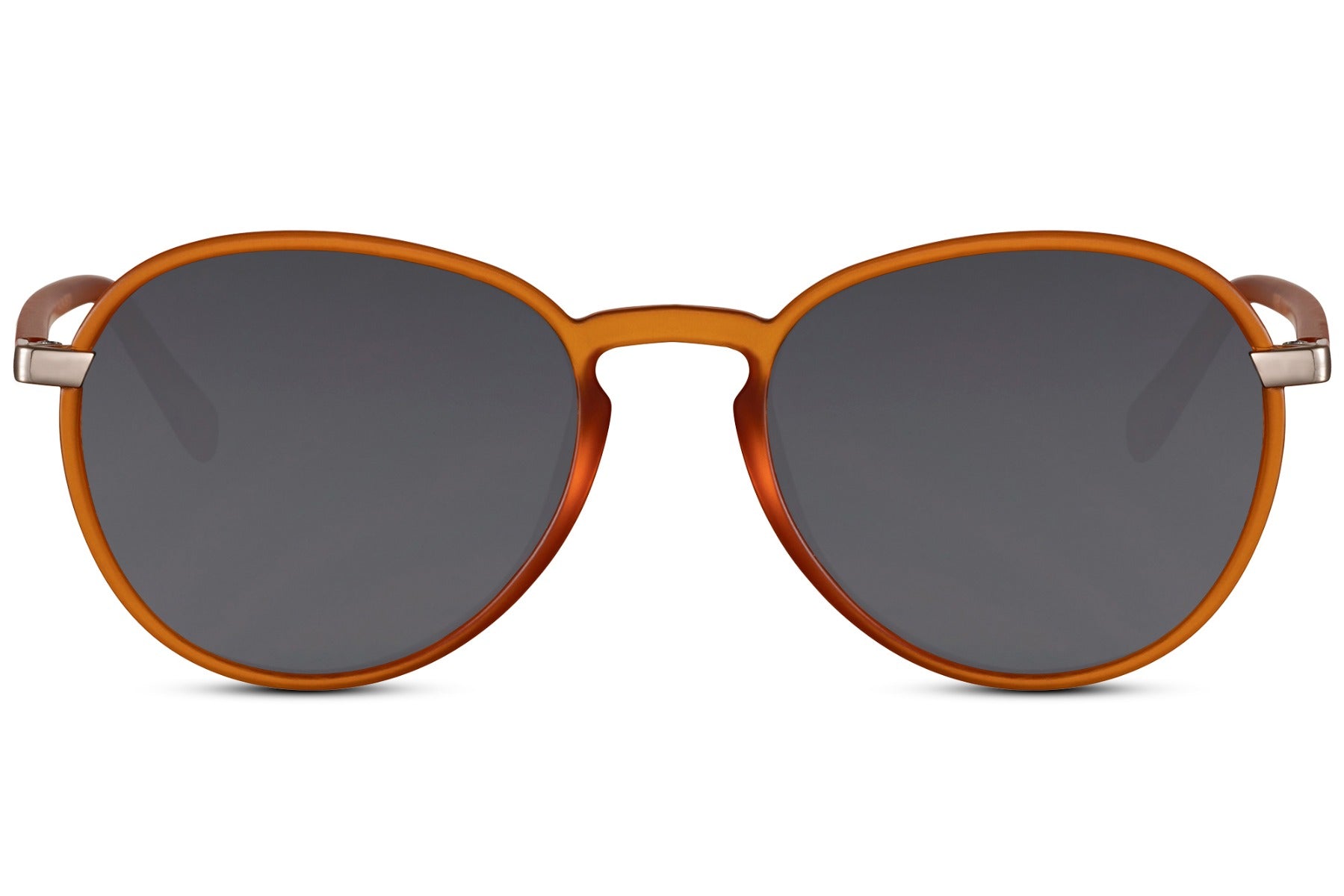 Deze oranje zonnebril met zwarte lenzen biedt 100% UV-bescherming (categorie 3). Gemaakt van gerecycled materiaal en geschikt voor zowel heren als dames. Een stoere look en maximale bescherming in één.