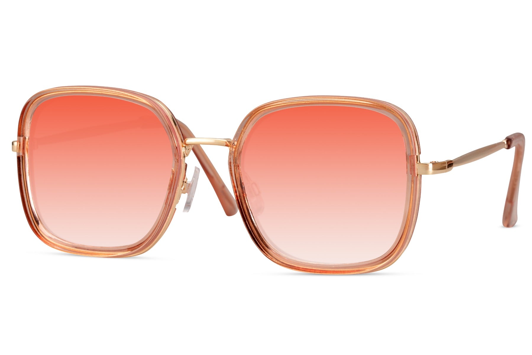 Deze dameszonnebril met goudkleurig montuur en oranje lenzen geeft je look een vrolijke twist. Voorzien van 100% UV-bescherming (categorie 1) en een lichtgewicht design. Perfect voor een zonnige dag met stijl.