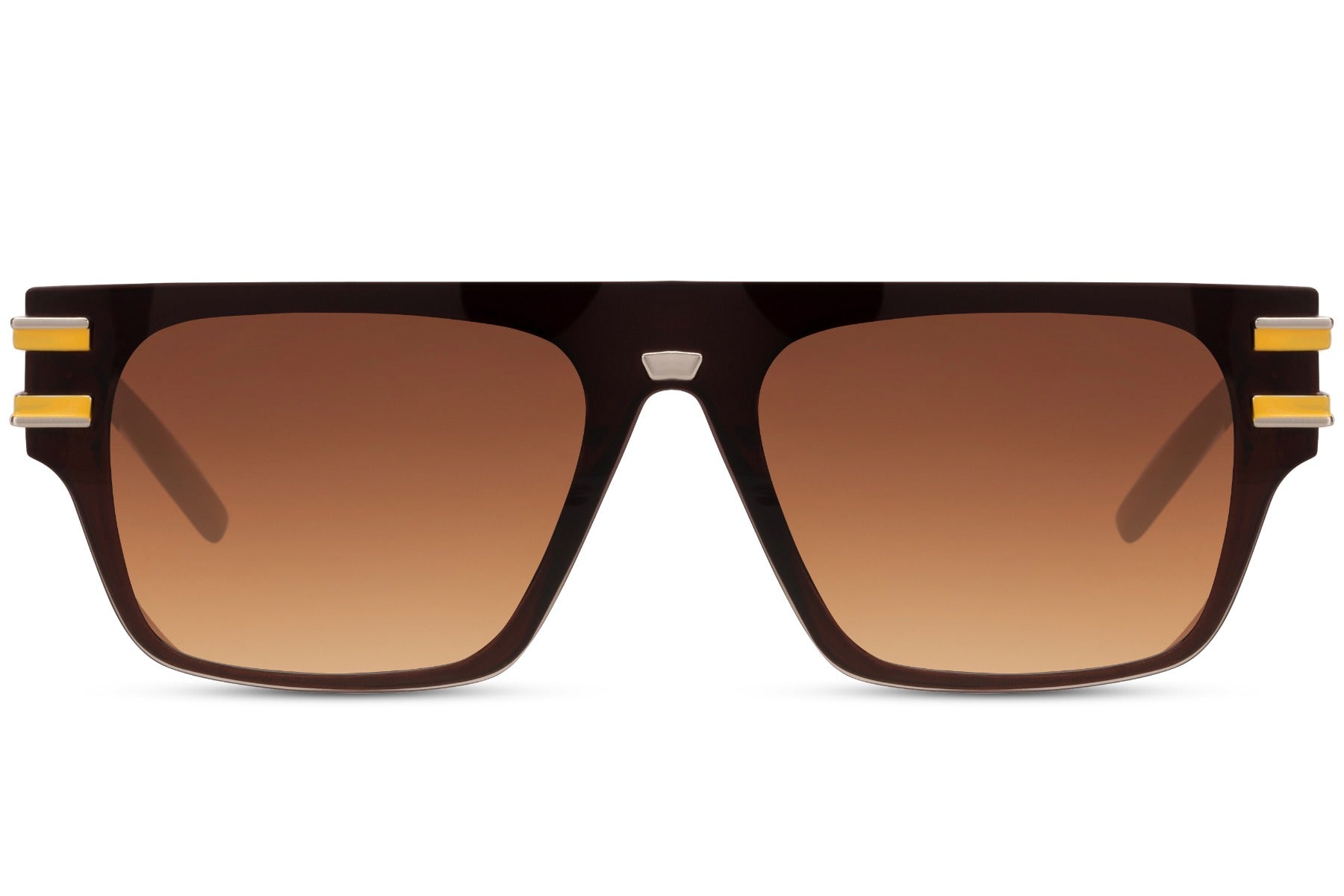 Met een bruin montuur, stijlvolle gouden details en donkere lenzen. 100% UV-bescherming en een unieke look voor zowel heren als dames. π